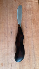 Sculptural hand carved handle, and stainless steel blade.